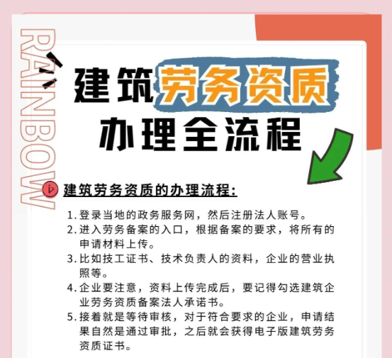 隨著建筑施工勞務(wù)資質(zhì)正式由審批制改為備案制,大大縮短業(yè)務(wù)流程,企業(yè)申請(qǐng)施工勞務(wù)資質(zhì)可以做到當(dāng)天就能拿到資質(zhì)證書......